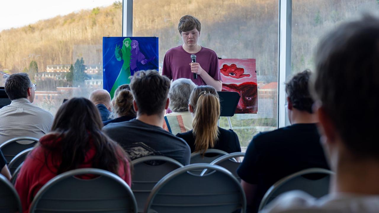 Students shared their original work or their favorite pieces at the annual English and Humanities Poetry reading